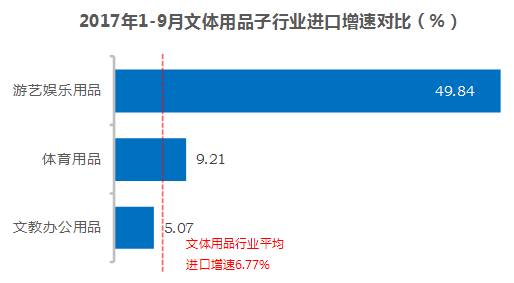 图 2017年1~9月全国文体用品制造业子行业进口增速对比情况