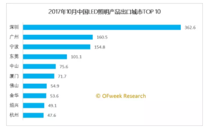 中国LED照明出口10月报告:出口额总共为16.26亿美元