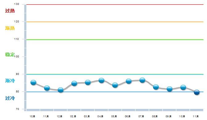 图1 2016.10—2017.11自行车行业利润景气指数变化态势