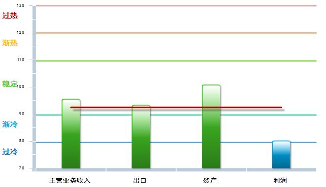 2017年12月电池收入指数为95.6,与11月93.87相比上升了1.73个百分点;电池出口景气指数为93.4,与11月97.39相比下降了3.99个百分点;电池资产景气指数为100.85,与11月的102.26相比下降了1.41个百分点;电池利润景气指数为80.21,较11月的76.10上升了4.11个百分点,进入“渐冷”提示区。(参见图1.4)