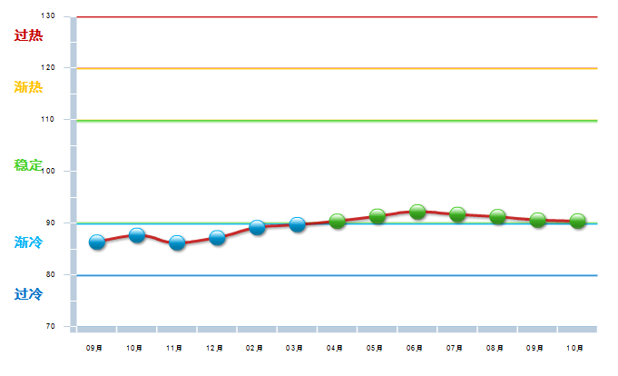 图2 2016.9----2017.10月工艺美术行业景气指数变化态势