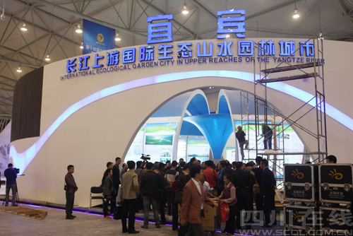 展馆现场,蓝色灯光映衬下的宜宾馆显得大气典雅,格外引人注目,工人们正忙碌着布置展馆。临港经济技术开发区展区内,全息触摸投影仪、大型电子显示屏、大气美观的临港区沙盘……展位以静态的图片、动态的触摸景象充分展示了临港大产业、大物流、大交通的投资环境和宜宾“2365”发展战略;错落有致的综合展示区内,有宜宾两县八区的专业展馆,还有名优白酒产业发展专业馆、综合能源深度开发专业馆等,集中展示了宜宾新城工业化、新型城镇化建设以及新农村建设成就和民生工程亮点。