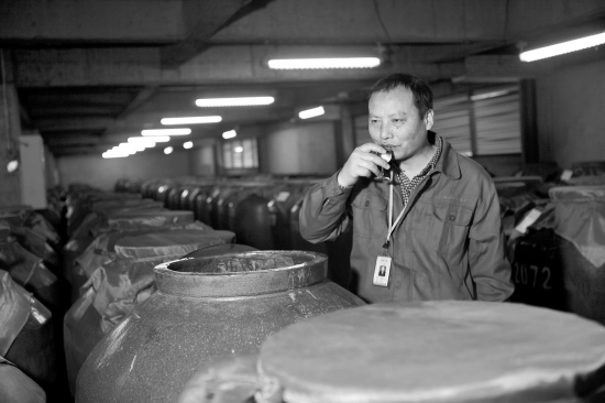 2007年,43岁的张四平脱产成了酒厂工艺员,虽然拿铁锹的机会已经不多,但他的身影依然会出现在酿酒车间。