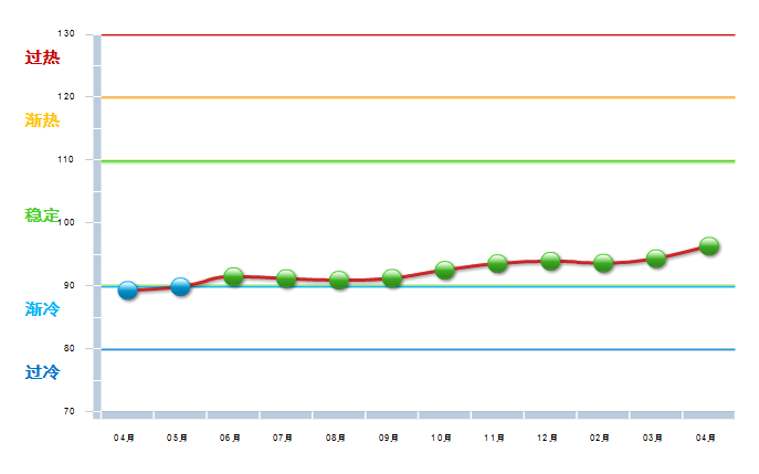 图1-2 2013.04—2014.04体育用品景气指数变化态势