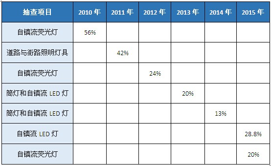 2010-2015年质检总局抽查照明灯具结果一览
