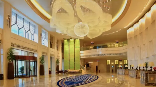 灯光可以起到引导顾客的作用,明确各个区域的方向,同时营造出大堂豪华、温馨的氛围。
