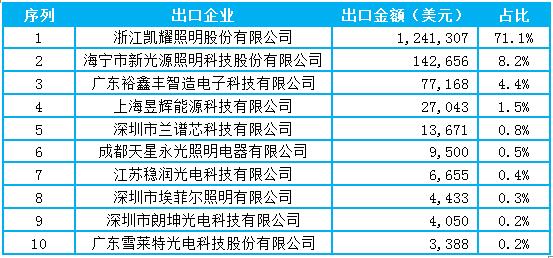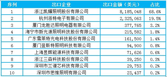 1-4月中国LED灯丝灯出口欧美国家TOP10企业