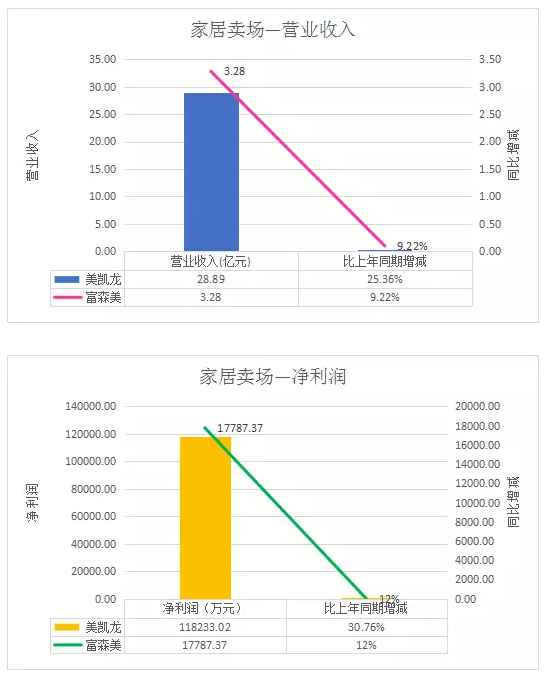 家居卖场中,报告期内,红星美凯龙实现营业收入28.89亿元,同比增长25.36%,净利润为11.82亿元,同比增长30.76%。其中,已开业自营商场取得营收约17.36亿元,比上年同期增长9.8%,毛利率为78.7%,与上年同期基本持平。