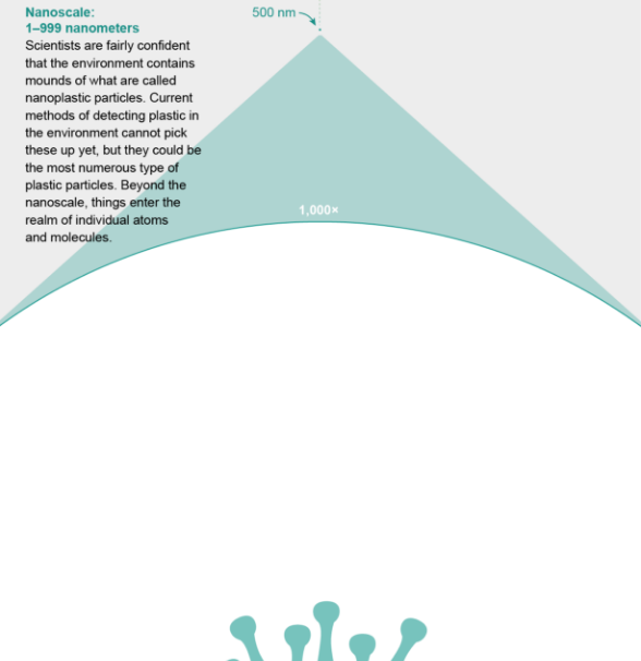 随着科学家们对微塑料进行梳理,并且从视觉识别微塑料转向使用机器传感器识别,他们发现微塑料的尺寸越来越小。大多数研究人员认为,微塑料正在进一步降解成他们所谓的纳米塑料。这些无限小的杂质会引起更大的关注,因为如果这些纳米塑料被人体摄入,它们更有可能穿透肠道进入血液,或者被人体吸入,深入积累在肺部。这种纳米大小的塑料碎片已经在实验室实验中被证明可以形成了,所以大多数研究人员相信它们在环境中是存在的。但汤普森表示,目前“我们还没有任何方法来分离纳米塑料”。有几个研究小组正在研究揭示这种潜在威胁的方法,其中包括AWI公司的研究人员,他们目前已经展示了一种在样品中识别已知纳米塑料的方法。当这些方法实现时,伯格曼预计:“我们会发现海洋污染比我们想象的要严重得多”。其他环境也会是如此。
