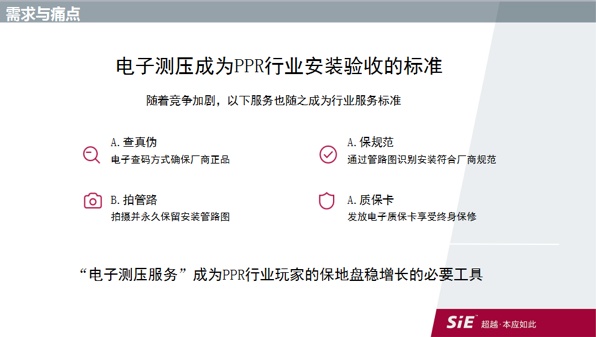 针对以家装为主的PPR行业厂商所面临的问题,赛意信息能量盒子“一站式智能化售后管理平台”--安全管家,能够针对客户的需求痛点,对症下药,妙手回春。