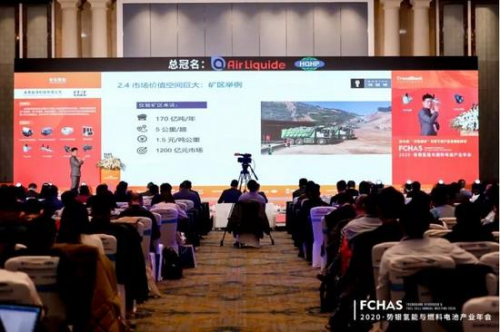 2020年12月,我们下线最新的装载机,充氢一次可产电120度,同时配备一个140度的电池;由于功率需要达到200kW,而氢燃料仅有50kW,因此无法仅靠氢燃料,需配备锂电混合使用。
