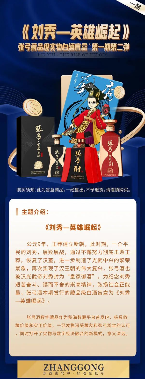 本期发售的张弓酒数字藏品NFT是第一期第二批,是主题为“刘秀——英雄崛起”的续集,经过研发团队与发行团队的精心策划,此次发售的NFT数字产品亮点频出。