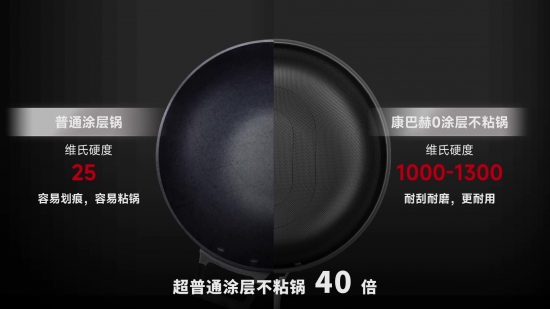 据了解,康巴赫0涂层不粘锅锅体能够达到维氏硬度1000-1300,硬度是不锈钢的6倍、铝锅的40倍,实现空锅加热250度的同时使用钢铲5万次后,不粘锅的性能依旧出色。即使在使用过程中空锅加热350℃,然后浸冷水池,锅体的不粘性能依旧完好如初。