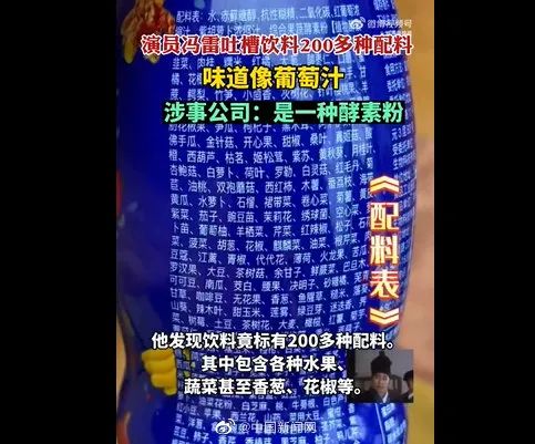 ▲一瓶饮料配料表显示232种配料。图/中国新闻网微博截图