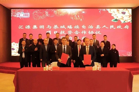 3月13日,汇源集团与恭城瑶族自治县人民政府在北京正式签署项目投资合作协议。恭城瑶族自治县县长杨征山、副县长郑勇、汇源集团副董事长兼执行总裁张传梁等人出席签约仪式并进行座谈交流。