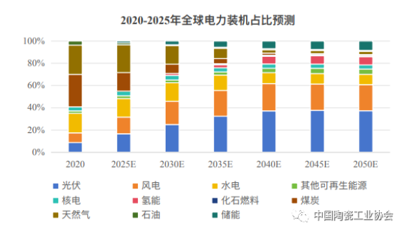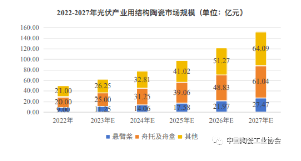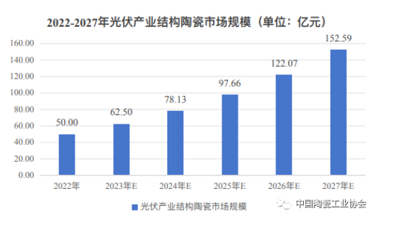 光伏电池在整个光伏产业链中,属于中下游环节,是决定组件效率和成本的核心器件,对于光伏发电成本的下降具有关键性的作用,2022年光伏产业用结构陶瓷市场规模为50亿元,预计2027年规模将达到152.59亿元。
