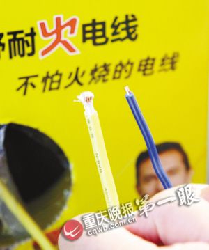 这种外表看上去和一般电线没多大区别的耐火电线,在胶皮和铜线之间还有一层保护膜。卖家称,即使发生火灾,这种耐火电线的胶皮部分也不会被烧坏,而且在火灾过程中,还能坚持工作长达2小时之久。