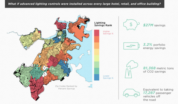 经营大数据(big data)及智能节能软件的 Retroficiency,发布最新调查统计显示,麻州的首府波士顿,光是在商业照明方面,就还有相当广大的节能空间,只要广泛应用智能照明,可节省 3.2% 的用电量,一年省下 2,700 万美元,相当于1.67亿元人民币。