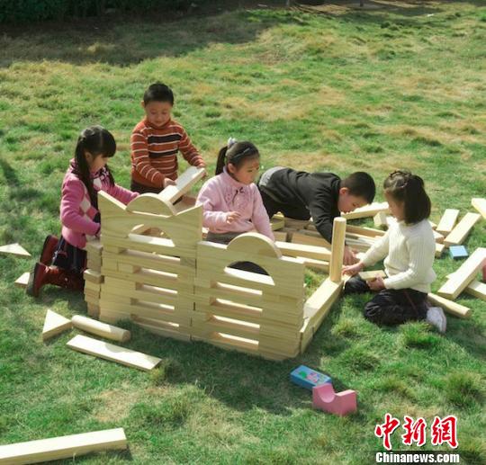 几块小小的积木,可用来搭摩天大厦,也能搭“诺亚方舟”,孩子们打开自己的想象力尽情组装,玩得不亦乐乎。