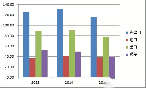2015年欧盟27国进出口数据新鲜出炉!数据显示,欧盟全年陶瓷进出口总额116.06亿美元,同比减少11.97%。其中陶瓷出口额77.75亿美元,同比减少14.28%;陶瓷进口额38.30亿美元,同比减少6.97%;贸易顺差39.45亿美元,同比收窄20.42%。详见下图。