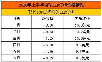 上半年全球LED灯泡价格情况