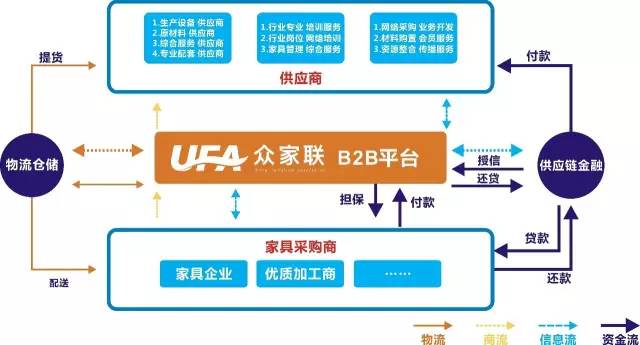 众家联是国内领先的以“传统产业+互联网+金融资本”为核心路径的家具产业链整合服务平台。以供应链为切入点,通过撮合交易、集中采购、源头交易、竞价交易和委托交易5种模式与提供供应链金融服务、智慧物流等多种业务模式,吸引家具企业将采购集中到平台上,从而把家具供应链、产业链、生态链彻底打通,形成强大的市场资源优势,从而对全产业链需求进行平台精准匹配。