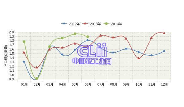 2014年全国缝纫机及零件行业连续三年月度出口额对比
