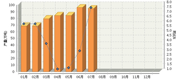 2014年1~7月,全国累计生产罐头594.03万吨,同比增长5.89%。上半年各月产量环比逐月增加,其中:6月份产量最高,达96.22万吨;7月产量环比略有回调。
