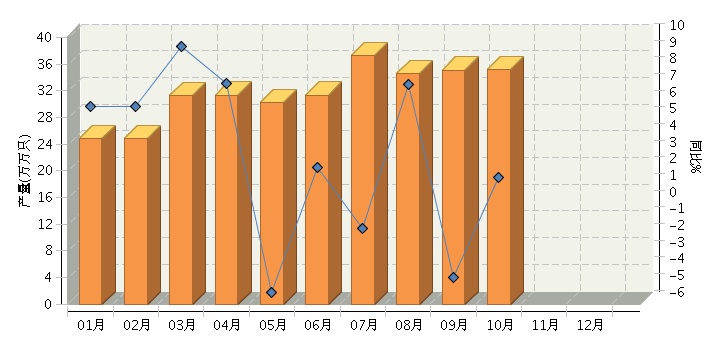 根据国家统计局公布数据,2014年1~10月,全国原电池及原电池组(折R20标准只)行业累计完成产量313.24亿只,同比增长0.50%%。其中:10月份完成产量35.15亿只,同比增长1.63%。2014年全国原电池及原电池组行业月度产量及同比如下图所示。