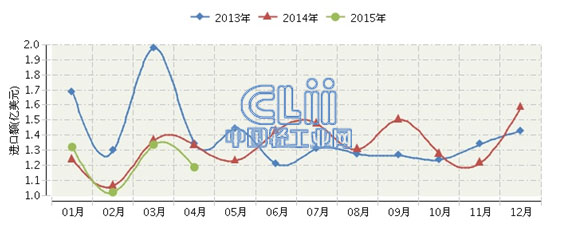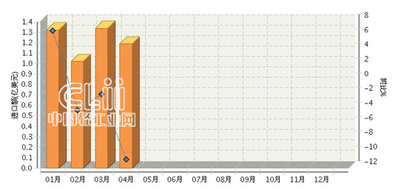 2015年1~4月,全国照明行业累计完成进口额4.87亿美元,同比增长-2.59%。其中: 4月份完成进口额1.19亿美元,同比增长-10.8%。