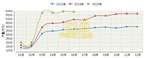 2015年1 ~6月,山东发光二极管(LED)累计完成产量27546.17万只,同比增长29.09%。其中:6月份完成产量5914.64万只,同比增长 19.78%。