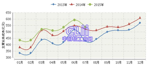 2015年全国家具行业月度主营业务成本及同比
