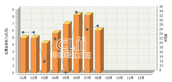 2015年1~8月湖南照明累计主营业务收入同比增长23.45%
