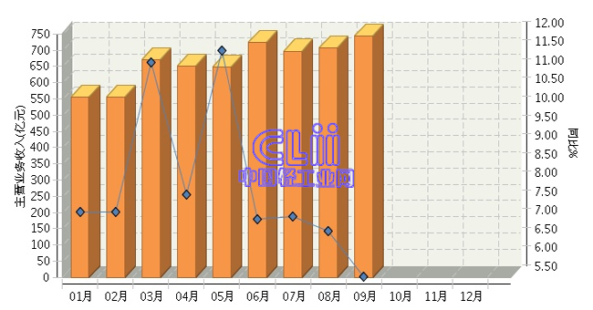 2016年1~9月全国家具行业主营业务收入累计同比增长7.87%
