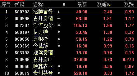 其中,长江证券表示,目前,白酒仍处于价格带全面上移的大周期中,未来1年-2年将从当前渠道利润改善切换至企业盈利改善,白酒企业将真正进入盈利释放周期。随着国庆中秋双节来临,白酒旺季提价预期增强,提升经销商提前备货需求,带动三季度收入利润弹性进一步释放。预计上市酒企业绩亦表现强劲,其中受益于品牌集中度提升及渠道积极性增强的一线白酒表现好于二三线品种。继续推荐全国性品牌贵州茅台、五粮液、泸州老窖,并重点提示趋势持续改善的洋河股份,二线品种重点推荐古井贡酒、口子窖、水井坊等。