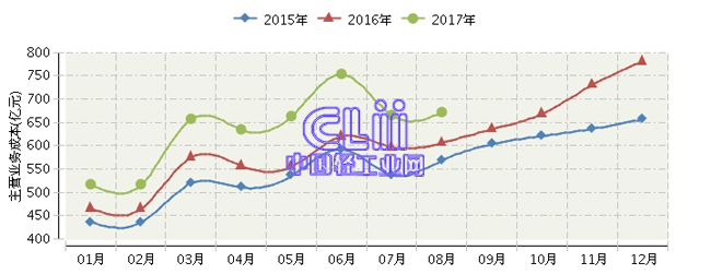 2017年1~8月全国家具行业主营业务成本累计同比增长12.04%