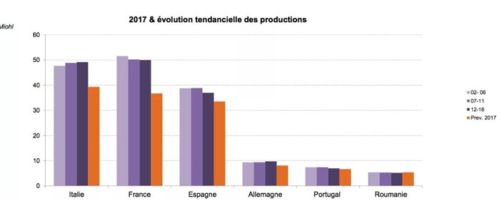 至于葡萄牙(6.6亿升)、罗马尼亚(5.3亿升)、匈牙利(2.9亿升)和奥地利(2.4亿升)是欧洲仅有几个产量出现小幅上涨的国家。