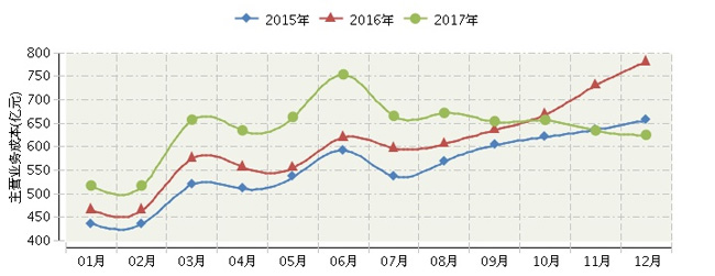 全国家具行业连续三年月度主营业务成本对比