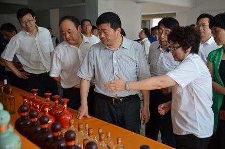 在参观金种子成品酒展示时,宁中伟董事长介绍金种子酒业新开发的健康白酒“和泰苦荞酒”和两款 “东方神草”养生酒,具有“防三高”和“养护肝脾”、强身健体的功效。方春明饶有兴趣地拿起一瓶“三两三”颍州佳酿酒,欣赏其时尚的设计和独特的个性,他鼓励金种子多开发大众白酒,积极应对新常态、主动适应市场需求。