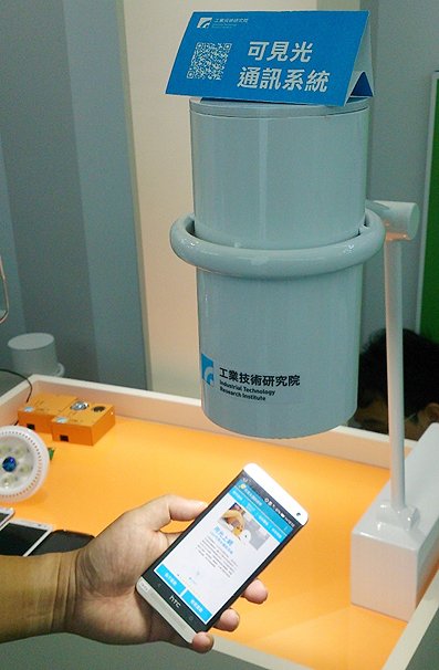台工研院开发的LED可见光通讯技术,将可见光通讯模组装置在LED灯具上,透过照明的光提供约60 Mbps传输容量,以提供观看高画质影片等宽频上网的服务,使得LED灯具兼具节能照明与智慧通讯的特色,可达到室内定位功能,提供室内导航、服务人员位置管理、与手机结合达到卖场定位服务等商业应用。
