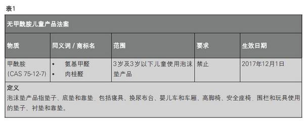 近日,纽约出台两项新的提议,拟禁止甲酰胺在儿童泡沫垫产品中使用。生效日期为2017年12月1日。