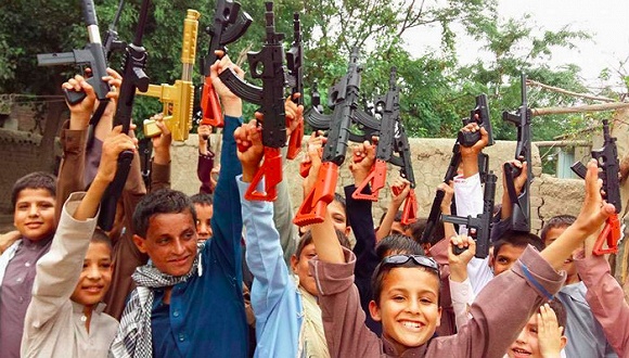玩具枪在阿富汗儿童中十分流行。图片来源:网络
