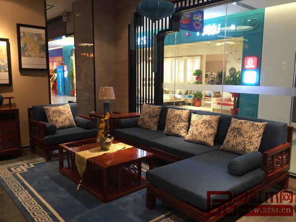 东方宝鼎红木岳阳旗舰店内的时尚典雅的新中式红木家具