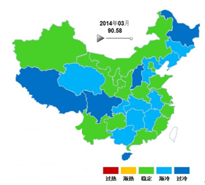 图4-1 2014年3月份中轻分地区景气指数冷暖示意图