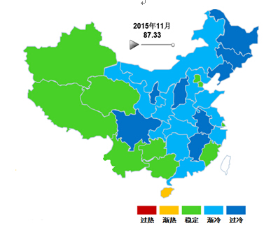 图4-1 2015年11月份中轻分地区景气指数冷暖示意图