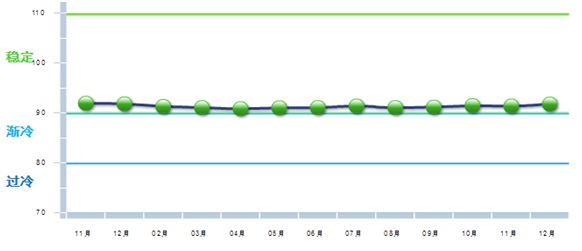 中国轻工业经济运行及预测预警系统数据显示:2016年12月份中轻景气指数为98.98,仍处于蓝色渐冷区间。从本年月度走势看,1-9月轻工景气指数波动下行,第四季度开始企稳回升,12月环比上升0.12点。