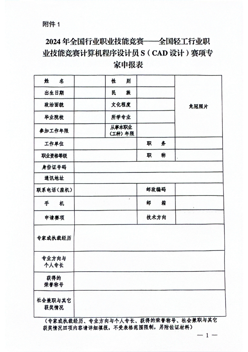 关于开展2024年全国 职业技能竞赛计算机程序设计员s(cad设计)赛项专家、裁判员征集工作的通知