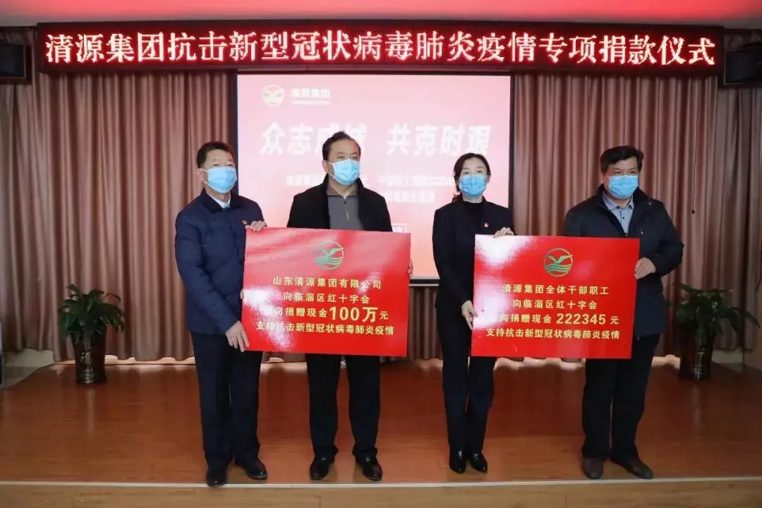 2月8日,清源集团向临淄区红十字会捐款100万元用于地方疫情防治;集团全体干部职工向临淄区红十字会捐款22.23万元用于湖北重点疫区疫情防治。清源集团累计捐款122.23余万元,积极履行企业社会责任。