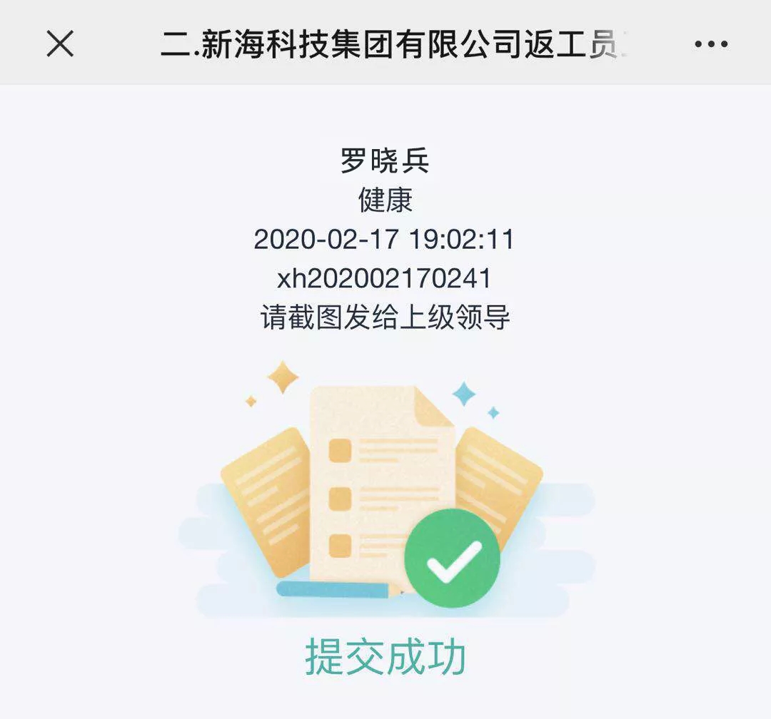 这是新海集团为复工做的第一手准备。“今年肯定要分批复工,要提前对员工的身体状况有了解。”新海集团副总裁孙宁薇说,为此,集团提早开发出在线申报小程序,根据员工填报的春节行程和健康情况,确定员工复工批次。