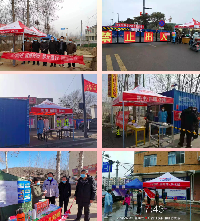 与此同时,全国各地的太阳雨经销商纷纷行动,为防疫检疫点捐赠善款和帐篷、大伞、食品、保温杯等物资。在村口、在小区、在街道,一顶顶红帐篷宣示着联防联控、群防群控的前沿阵地。太阳雨经销商在这场战“疫”中表现出了凝聚力和行动力,也彰显着全民战“疫”的强大战斗力。